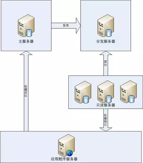 2,实现方法:在MS Sql server中可以使用发布定义的方式实现数据库复制,实现读写分离,复制是将一组数据从一个数据源拷贝到多个数据源的技术,是将一份数据发布到多个存储站点上的有效方式。使用复制技术,用户可以将一份数据发布到多台服务器上。复制技术可以确保分布在不同地点的数据自动同步更新,从而保证数据的一致性。SQL SERVER复制技术类型有三种,分别是:快照复制、事务复制、合并复制。SQL SERVER 主要采用出版物、订阅的方式来处理复制。源数据所在的服务器是出版服务器,负责发表数据。出版服务器把要发表的数据的所有改变情况的拷贝复制到分发服务器,分发服务器包含有一个分发数据库,可接收数据的所有改变,并保存这些改变,再把这些改变分发给订阅服务器。