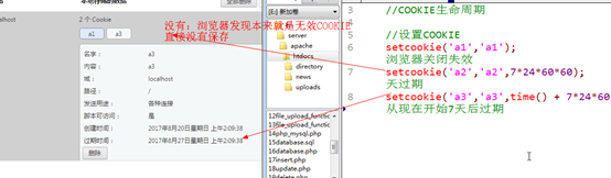 2)设定为一个常规日期戳的周期:通过setcookie第三个参数可以限定生命周期,是用时间戳来管理,从格林威治时间开始