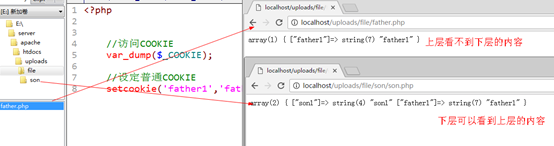 father中不能看到son中的内容 但是son中可以看到father中的内容 但是一般不这样设定 不会说让cookie只在某个子文件中可以访问