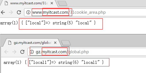 只有设定的这个www.myitcast.com域名可以访问到local2这个cookie