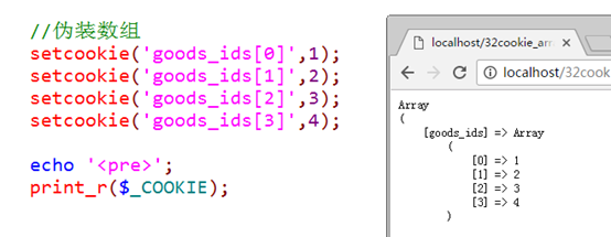 1)设置形式:setcookie('c1[k1]', 值)