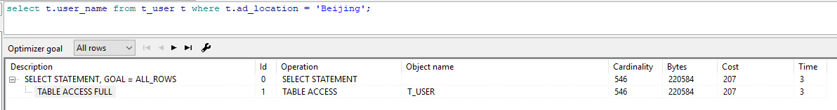 需求1:查询AD_LOCATION为Beijing的用户的USER_NAME,SQL语句如下: