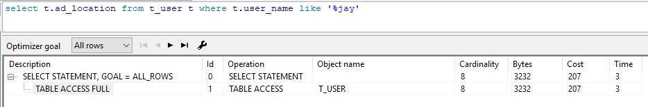 例如查询T_USER表中user_name以jay开头的人的AD_LOCATION: