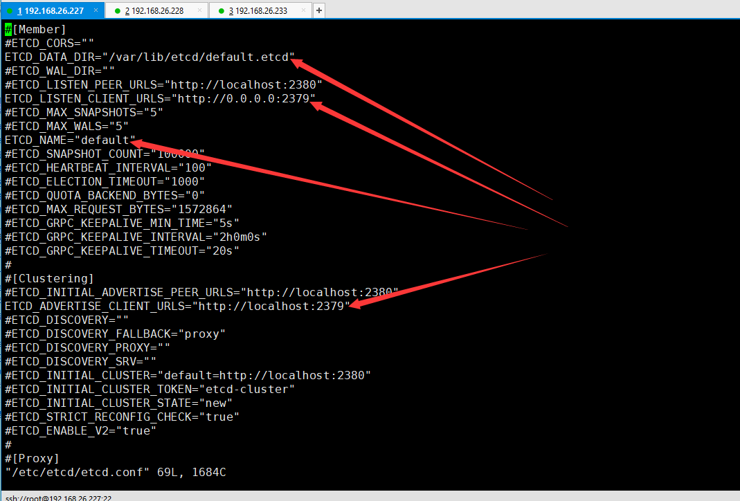 2.2、编辑:vi /etc/etcd/etcd.conf文件,修改结果如下:
