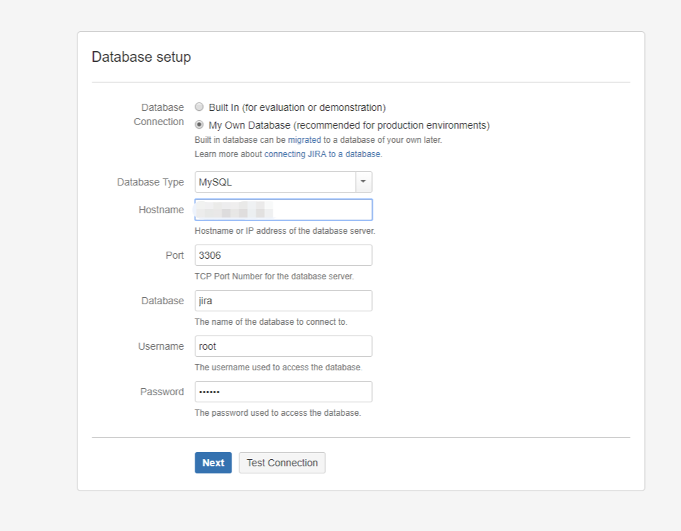 4.设置数据源,前提是在mysql里需要创建数据库jira,格式为UTF-8