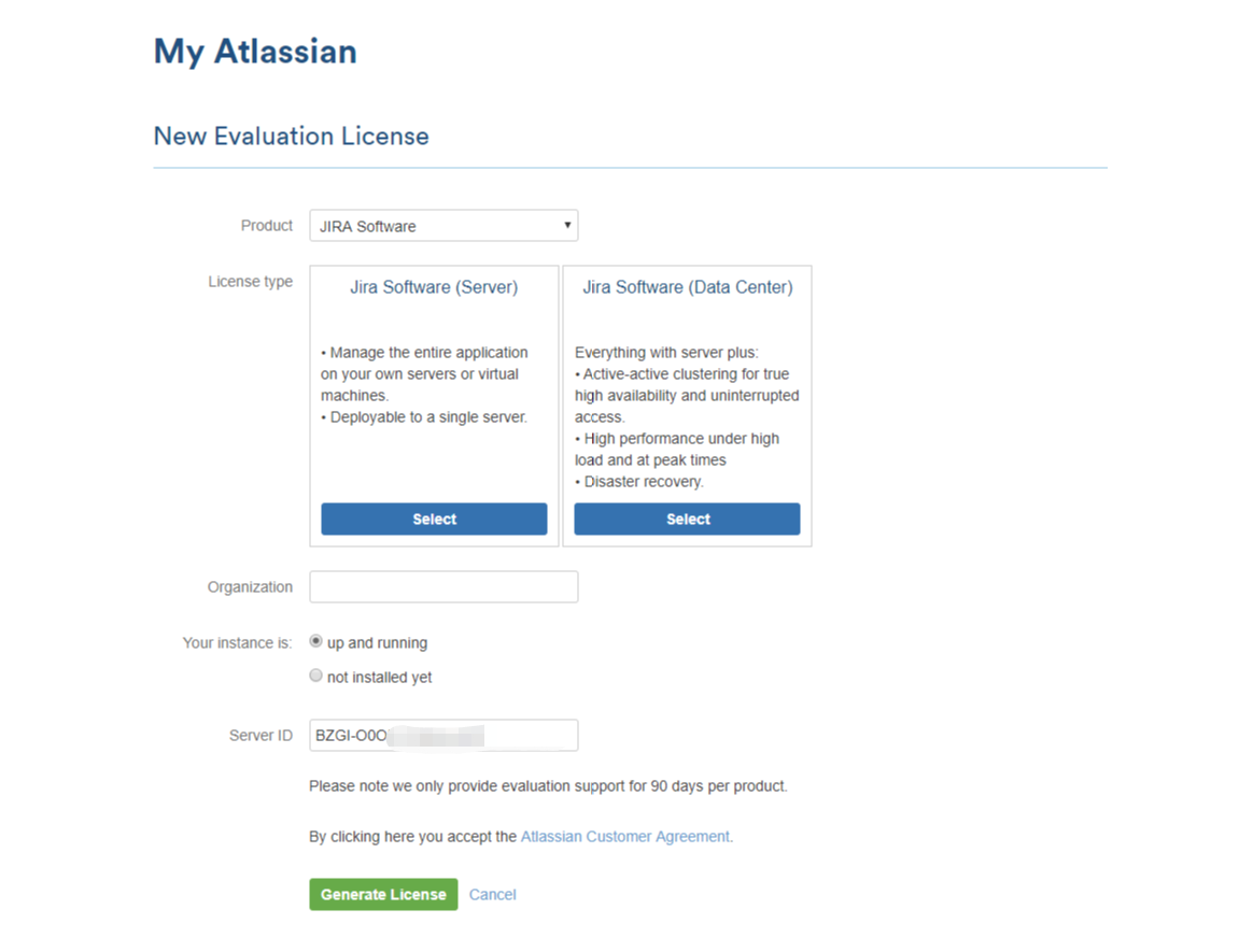 因为我们没有正式的license,所以需要我们在jira官网注册一个账号