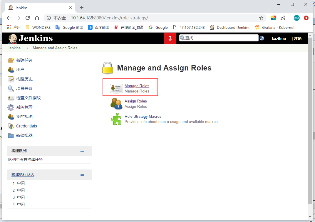 要实现权限需求,需先确保jenkins的权限插件已安装,插件名:Role-Based Strategy或者Role-based Authorization Strategy