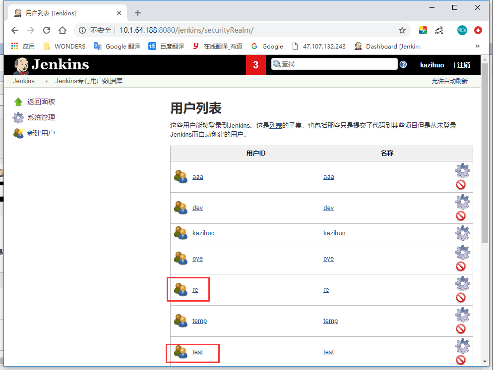 # 系统管理à管理用户à新建用户à创建test和re用户;