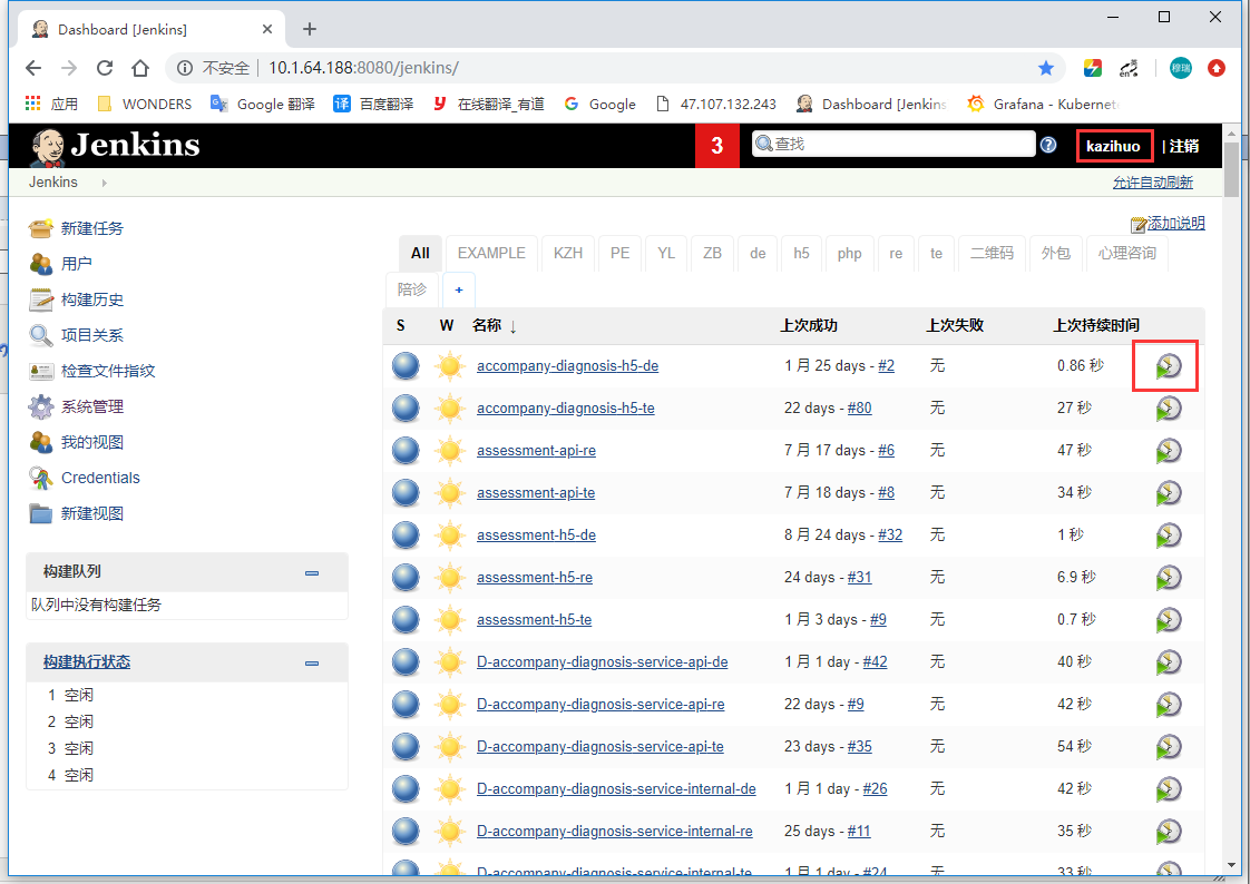 # re账号登陆,只具有所有项目的查看权限(可看到项目右侧的构建按钮消失);