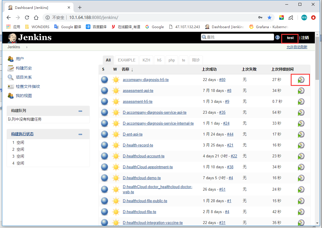 # 此时test具有全局的构建权限,现需针对项目对其划分仅有指定测试环境的项目构建权限,即缩小权限,添加约束;