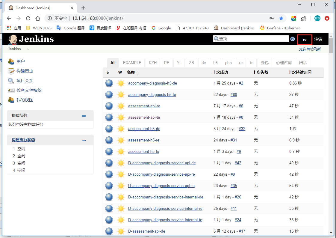4、re账号提供给所有人,只具有查看所有项目的权限,便于技术人员排查问题。