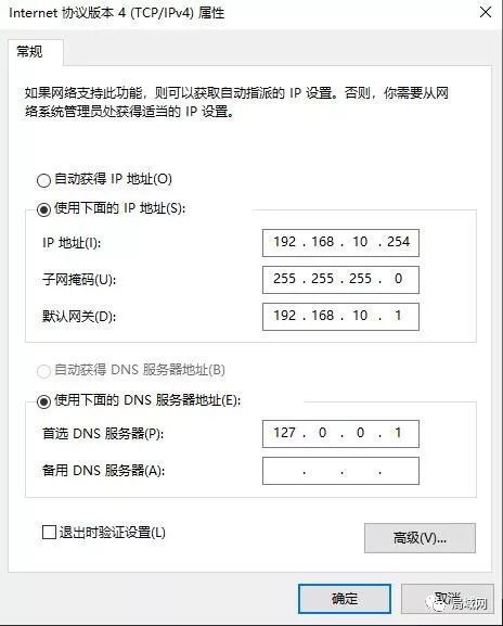 2、选中AD域服务器,修改静态IP地址,将DNS设置为127.0.0.1。