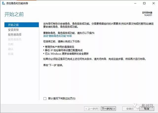 5、“开始之前”,启用向导,进行角色或功能添加,下一步。