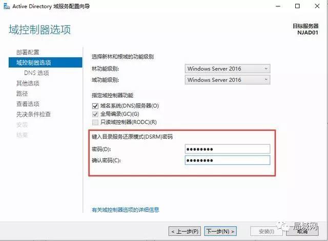 19、设置目录服务器叫还原模式(DSRM)密码。Directory Services Restore Mode,简称DSRM,又称目录服务恢复模式。是Windows域控制器的服务器安全模式启动选项。DSRM允许管理员用来修复或还原修复或重建活动目录数据库。