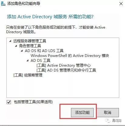 9、勾选后,会跳出如下需要安装的角色或功能,点击“添加功能”。