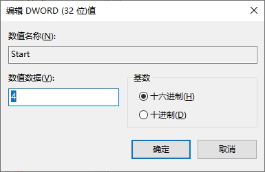 3、点击修改,把start值改成16进制,值改为“4”,然后点击「 确定 」保存数据,如图所示。