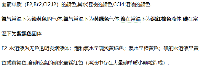 好家伙求补充卤素单质的颜色,融到四氯化碳里的颜色