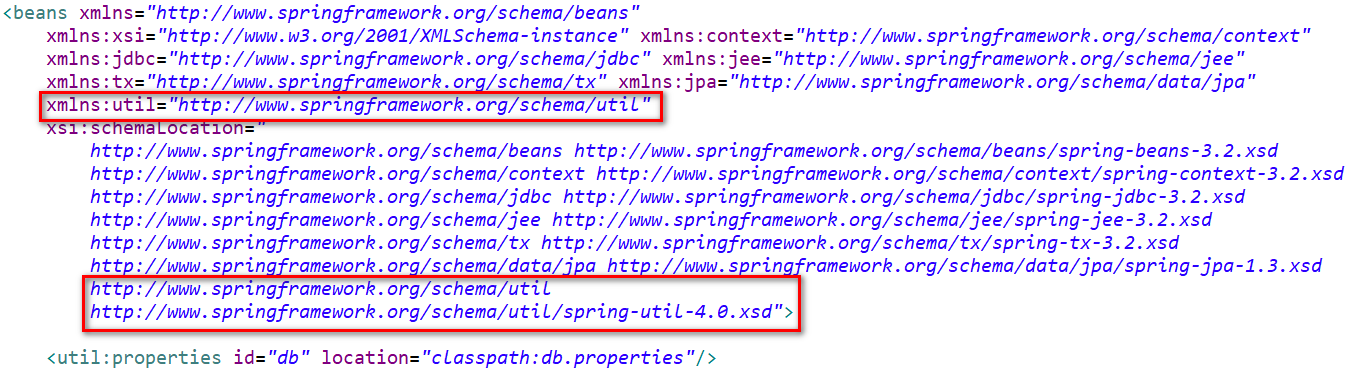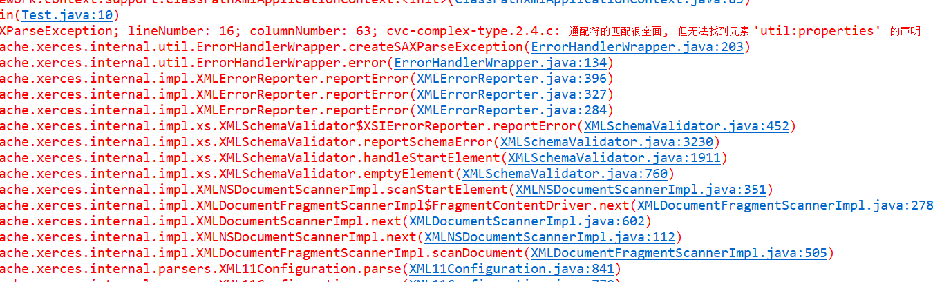 通配符的匹配很全面, 但无法找到元素 'util:properties' 的声明