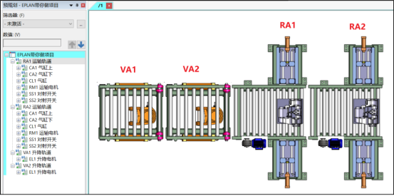 1.根据经验,将生产线中的设备主体(气缸、电机等)设计信息做成Eplan的窗口宏文件,如图2生产线图形宏所示;