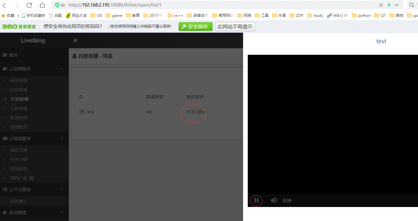 拉流地址:192.168.2.195:10080(网页打开,登录用户和密码:admin admin)