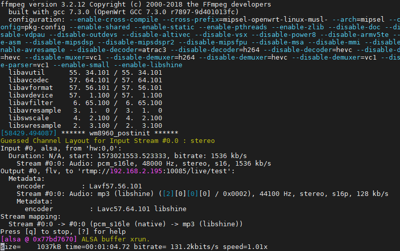 MT7628平台使用ffmpeg+alsa实现音视频RTMP推流