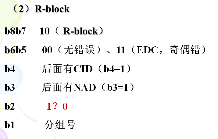 I-Block用于传输应用层信息,R-Block用于传输ACK或NACK,S-Block用于交换控制信息。