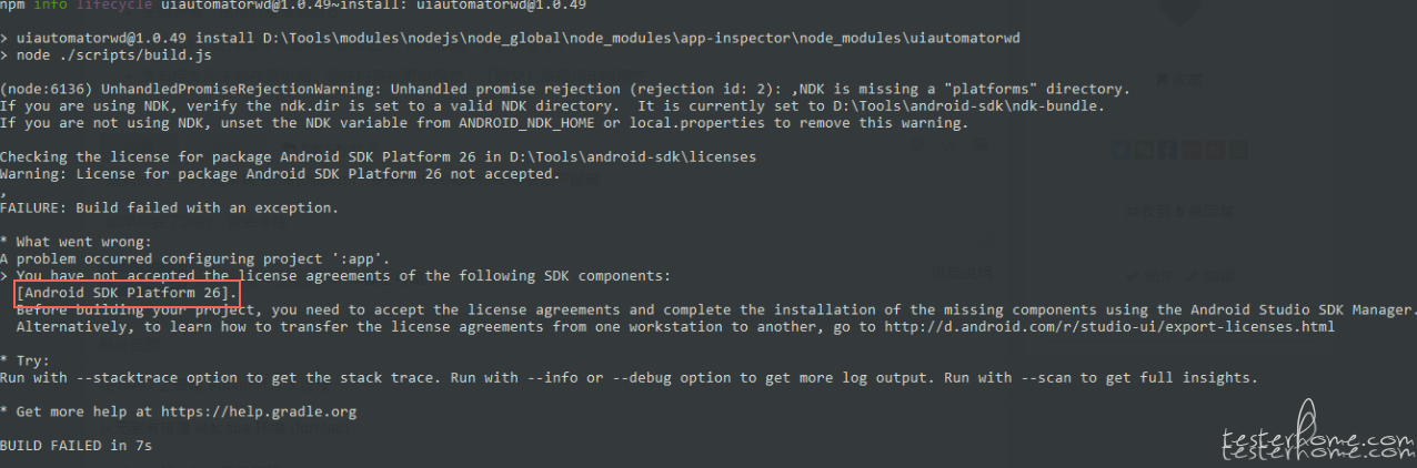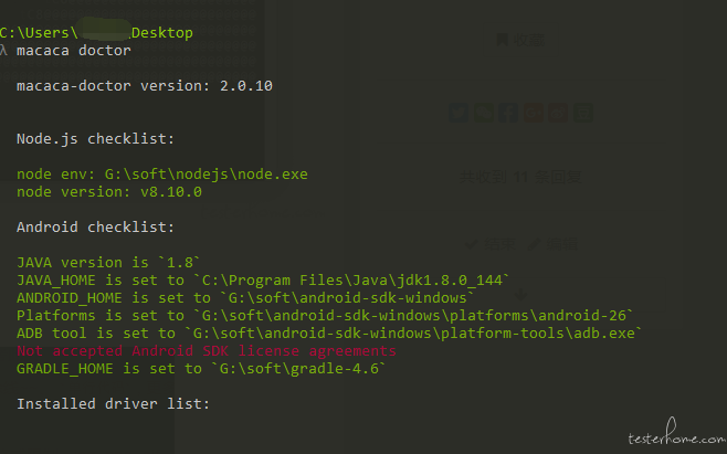 4.执行macaca doctor 时提示 Not accepted Android SDK license agreements