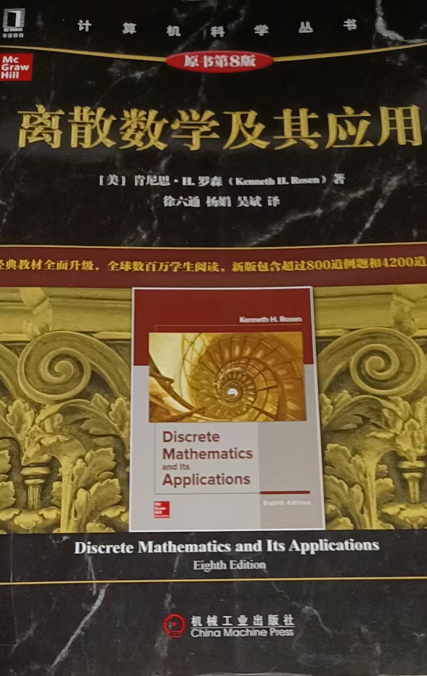 - 数理基础非常重要,看论文好多地方根本看不懂。先学离散数学,推荐看Kenneth H. Rosen的《离散数学及其应用》。这本借到咯!忒厚,真不知道我毕业之前能不能看完,就先看这一本吧,定个目标:2个月。看的过程中我会不断上来补充一些自己学到的东西,浅浅记录一下