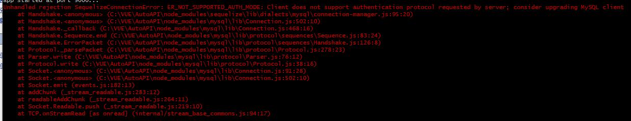 今天重装了系统,装了高版本的mysql,是node koa sequelize连接mysql时的项目,结果运行报错了如图