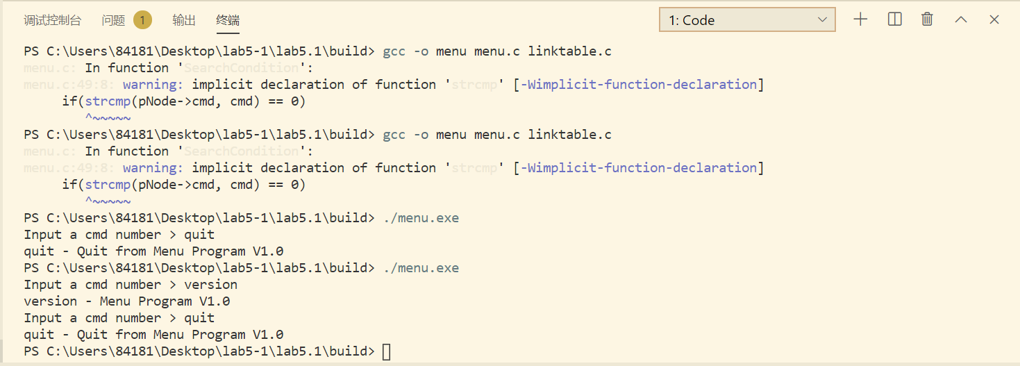 1. 在VSCode下编译运行lab5-1.tar.gz 即http://pan.baidu.com/s/1pJ0qAIv