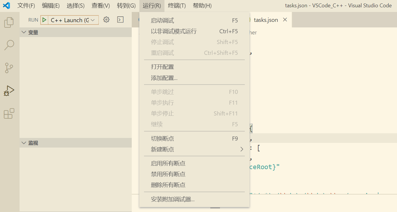 刚开始总因为C/C++扩展下载不成功无法完成调试,根据错误信息到 https://github.com/microsoft/vscode-cpptools/releases/tag/0.27.0 下载:cpptools-win32.visx