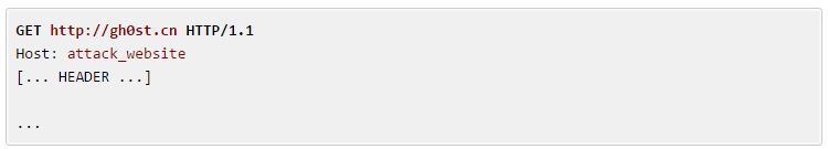 当时是想测SSRF的,但是经过测试没发现存在漏洞,后来想起之前看过的一些漏洞案例,将请求报文中的URI部分替换成了网址:http://gh0st.cn,就变成了如下的请求: