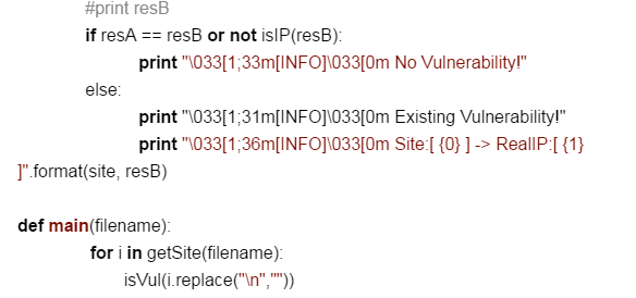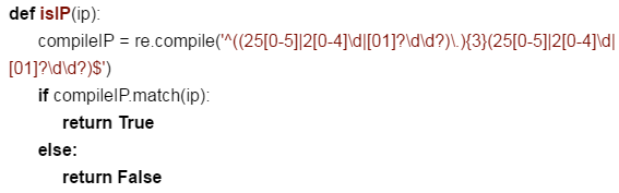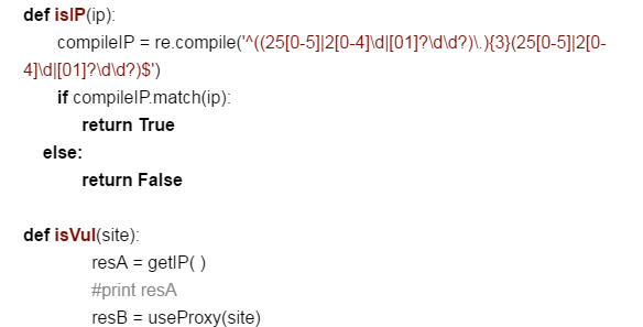 防止有些会出错返回的内容不是IP,其实返回不是IP也就间接证明不存在这种漏洞,所以需要写个正则来匹配,这时候判断是否是IP的函数就诞生了: