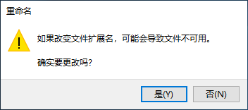 在弹出的对话框选择“确定”。这个对话框的意思是说,避免您误更改了扩展名,又忘记了原先的扩展名,那么就不能再运行以前的程序了。