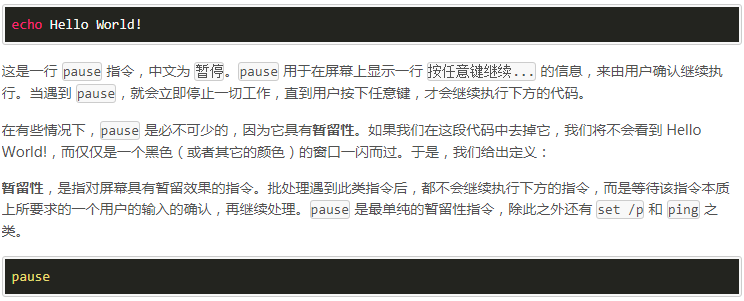 Hello World!,这可能是每一个入门者都会编写的第一个程序。它们往往只是一个简单的输出,但是却代表着无数的成功和无法比拟的喜悦。在Batch中,您也可以编写Hello World。