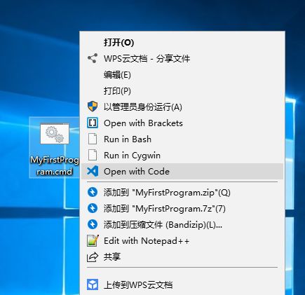 这样,您就得到了一个崭新的Batch文件!我们右键它,选择Open with Code,这样就来到了它的编辑页面:
