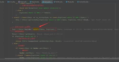 当匹配到exp的时候,就会在exp后面添加一个空格,导致不能同parseKey方法中的exp相等。同样,利用insert方法向数据库插入数据也是同种原理。由于篇幅问题,网上的分析文章也多,之后的注入不想再造轮子了,可以详细看这个师傅的文章:https://github.com/Mochazz/ThinkPHP-Vuln