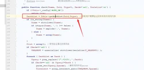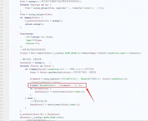 在tp3中,在Auth的getAuthList方法存在eval函数,跟进代码