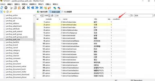 这里需要满足$command变量可控就可以rce了,$command为[表前缀]_auth_rule的condition字段,还是以yershop源码来分析,控制权限的表为yershop_auth_rule。
