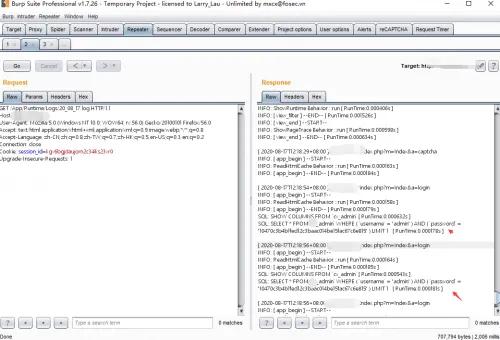 在ThinkPHP3的版本中,入口文件index.php是跟应用目录、框架目录在同一个目录下的,在DEBUG开启的状态下,会在runtime生成日志文件,泄露一些管理员登录后台的账号密码等。tp3的日志文件命名规则为:根目录(或者应用目录)/Runtime/Logs/Admin/20_08_17.log(年份前2位_月份_日.log)