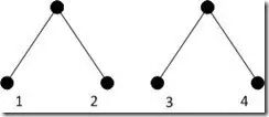 上面这个{1, 2, 3, 4}的例子就是个很好的特例,如图(注:图中节点旁的数字一概为频率值,而非编号):