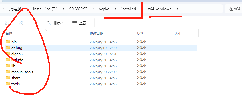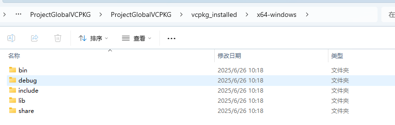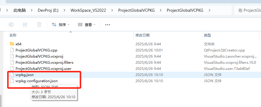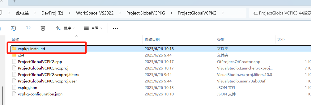 则自动在:vcpkg.json目录下创建项目级别的安装文件:vcpkg_installed