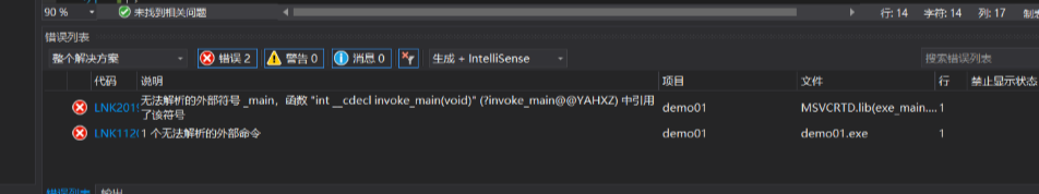 用VS创建空桌面程序【Empty】,默认是控制台的配置,创建桌面程序则报错:MSVCRTD.lib(exe_main.obj) : error LNK2019: 无法解析的外部符号 main,函数 "int __cdecl invoke_main(void)" (?invoke_main@@YAHXZ) 中引用了该符号