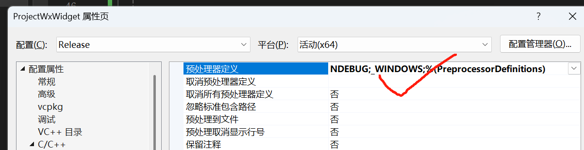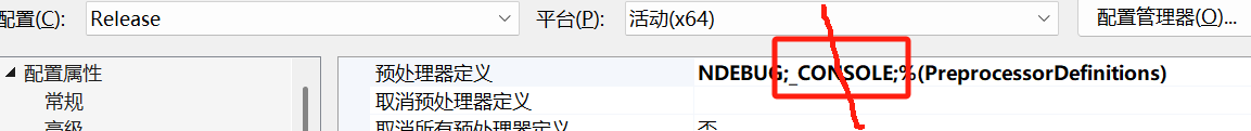 C++属性预处理器将:_CONSOLE 修改为_WINDOWS,如下: