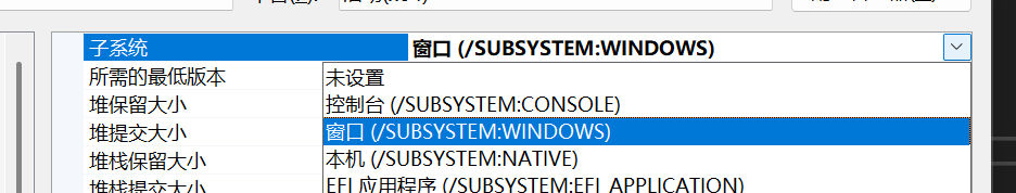 子系统由:控制台 (/SUBSYSTEM:CONSOLE) 修改为:窗口 (/SUBSYSTEM:WINDOWS)