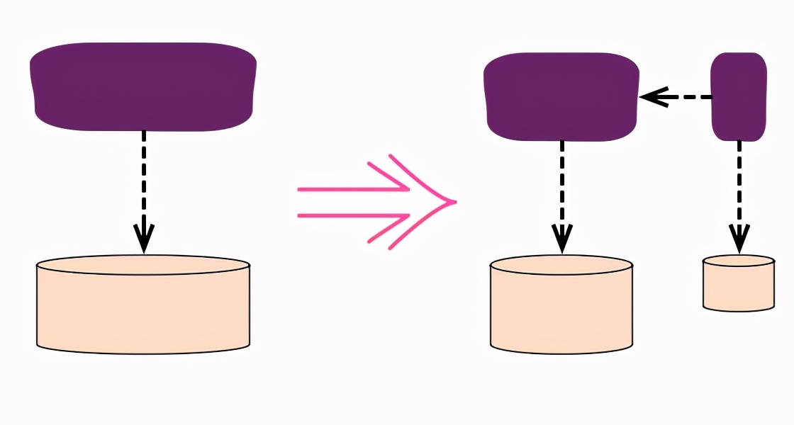 当将整体式服务器拆分成较小的服务时,最困难的部分实际上是拆分存在于整体式数据库中的数据。要提取数据丰富的服务,遵循一系列步骤始终保持数据的单个写副本是很有用的。这些步骤首先在现有的整体中进行逻辑分离:将服务行为拆分为单独的模块,然后将数据拆分为单独的表。这些元素可以分别移动到新的自治服务中。