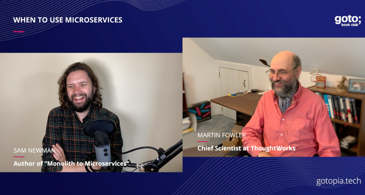 goto会议要求我对萨姆·纽曼的书《Monoliths to Microservices》进行采访。这变成了有关微服务及其何时使用它们的一般性讨论。萨姆认为它们的三个主要原因是独立的可部署性、数据的隔离性和反映组织结构。我对第一个更为怀疑,但认为数据和人员是软件开发的复杂部分。