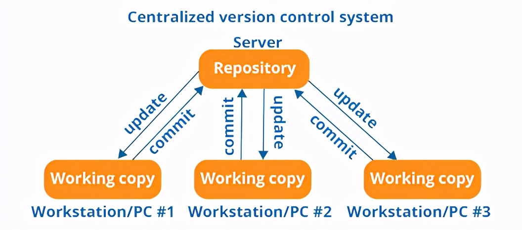 每个程序员都可以使用存储库中存在的数据来提取或更新其工作站,或者可以对数据进行更改或提交到存储库中。每个操作都直接在存储库上执行。