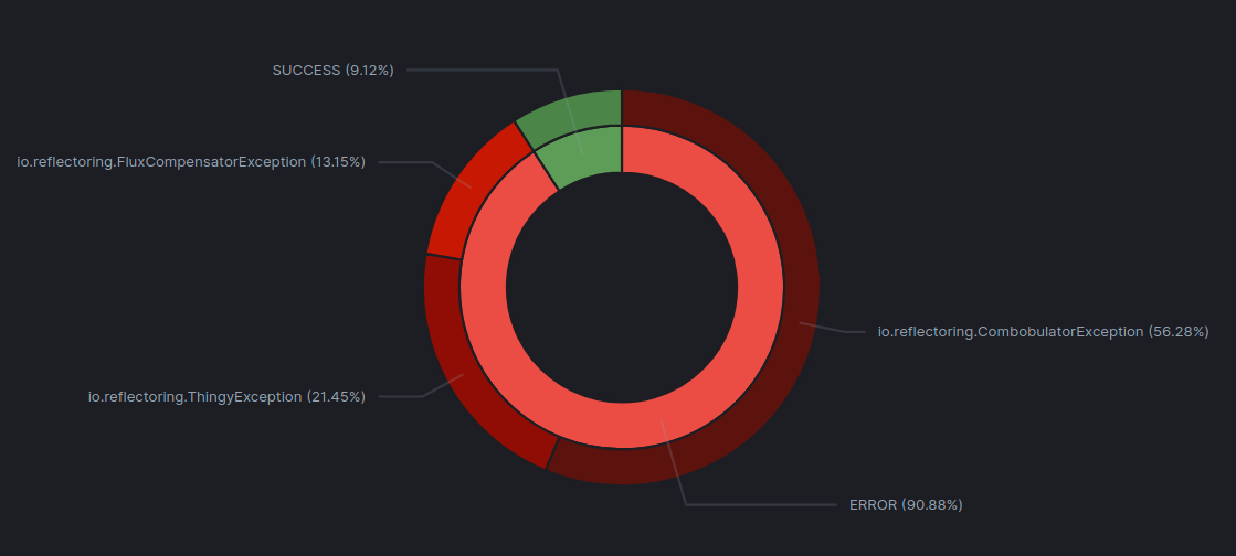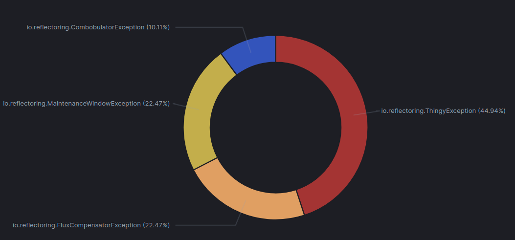 此图表显示几乎一半的错误是由 ThingyException 引起的,因此检查是否可以以某种方式避免此异常可能是个好主意。如果无法避免,我们应该将其记录在 WARN 而不是 ERROR 上,以保持错误日志的清洁。