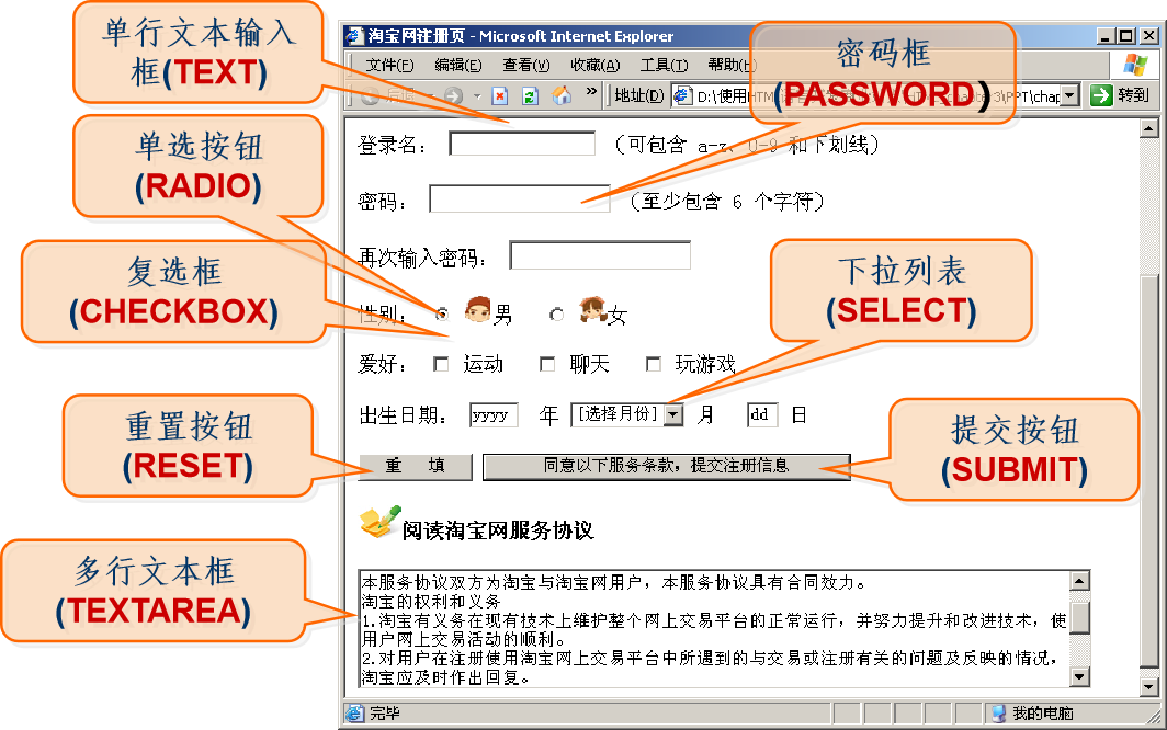 :表示标题列。本质上就是一个特殊的td。th中的文字默认为粗体。- 注册用户